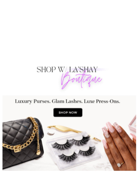 Shop W/ La’Shay offers luxury-inspired purses, glam lashes, and flawless press-on nails designed to help you show up polished, powerful, and covered in grace.